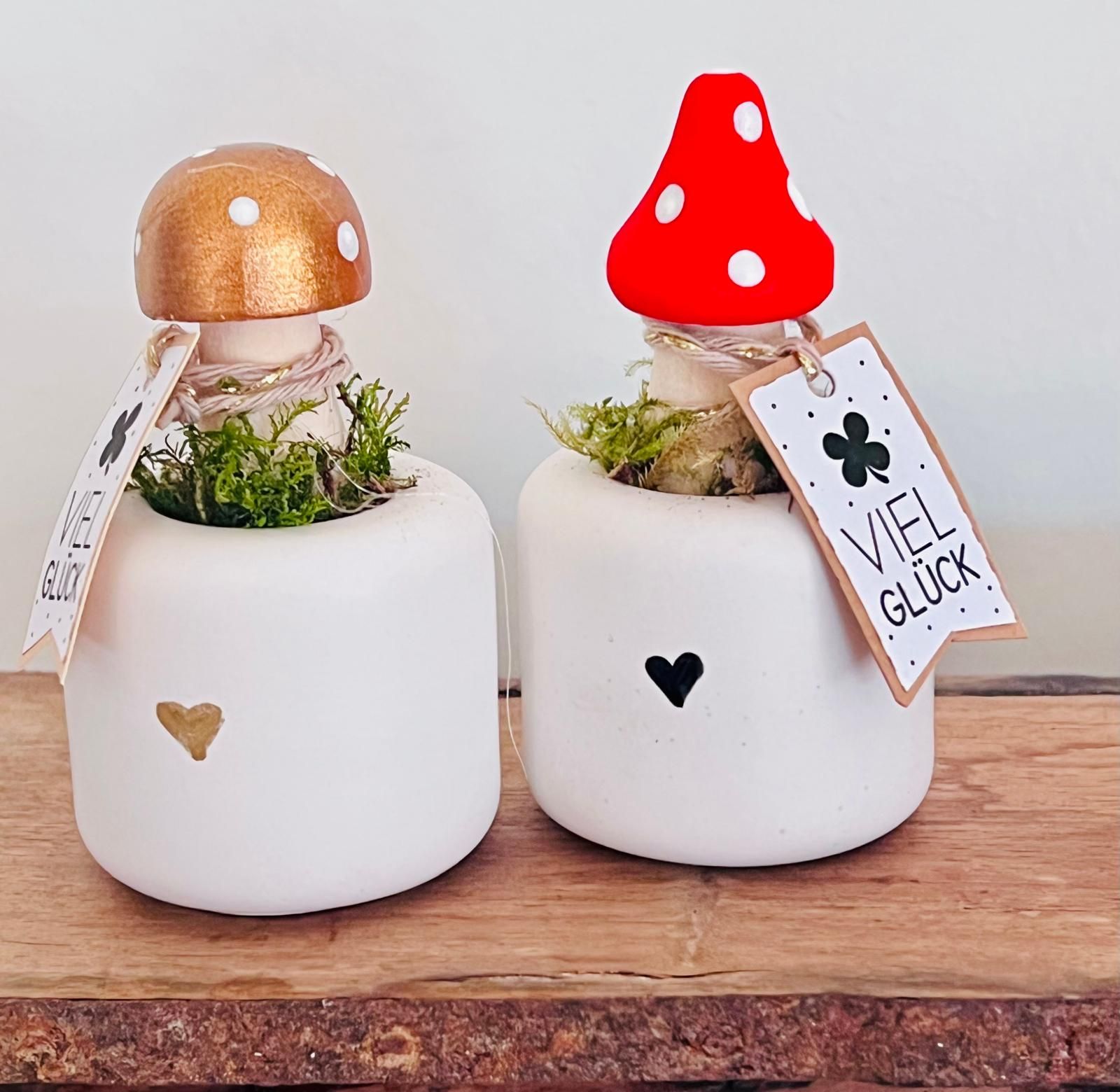 Holzpilz in rot oder gold im Keraflotttöpfchen